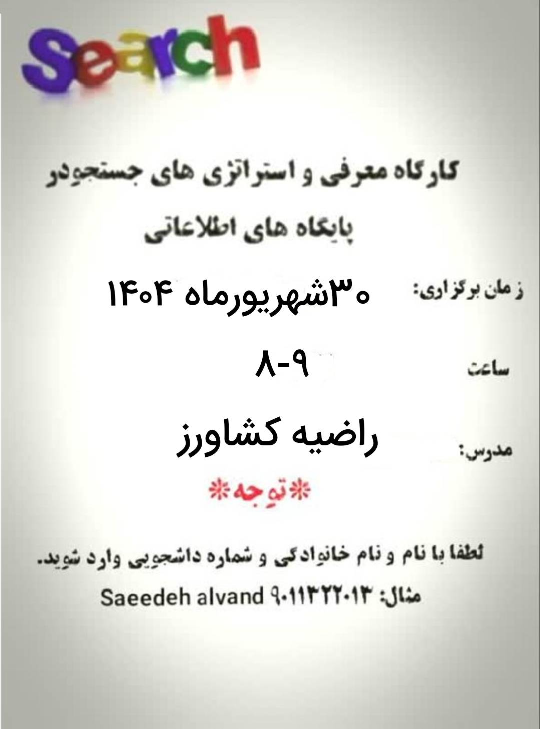 کتابخانه دانشکده داروسازی برگزاری کارگاه آموزشی معرفی و استراتژی های جستجو در پایگاه های اطلاعاتی شهریور ماه 1404 گروه خبری : اخبار کتابخانه کد خبری : 133297 کپی کلیدواژه